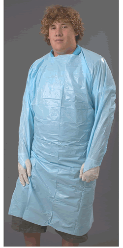 Blue, Polyethylene, for Clinical Settings, Lightweight, Blood/Fluid Resistant, Tie-in Back, Large Size 15/pk |