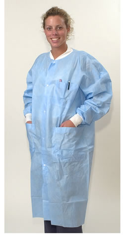 Lab Coats, Blue or White, SMS Polypropylene, S to 6XL, Snap or Velcro Front, Knit Cuffs and Collar, Knee Length, Breathable,